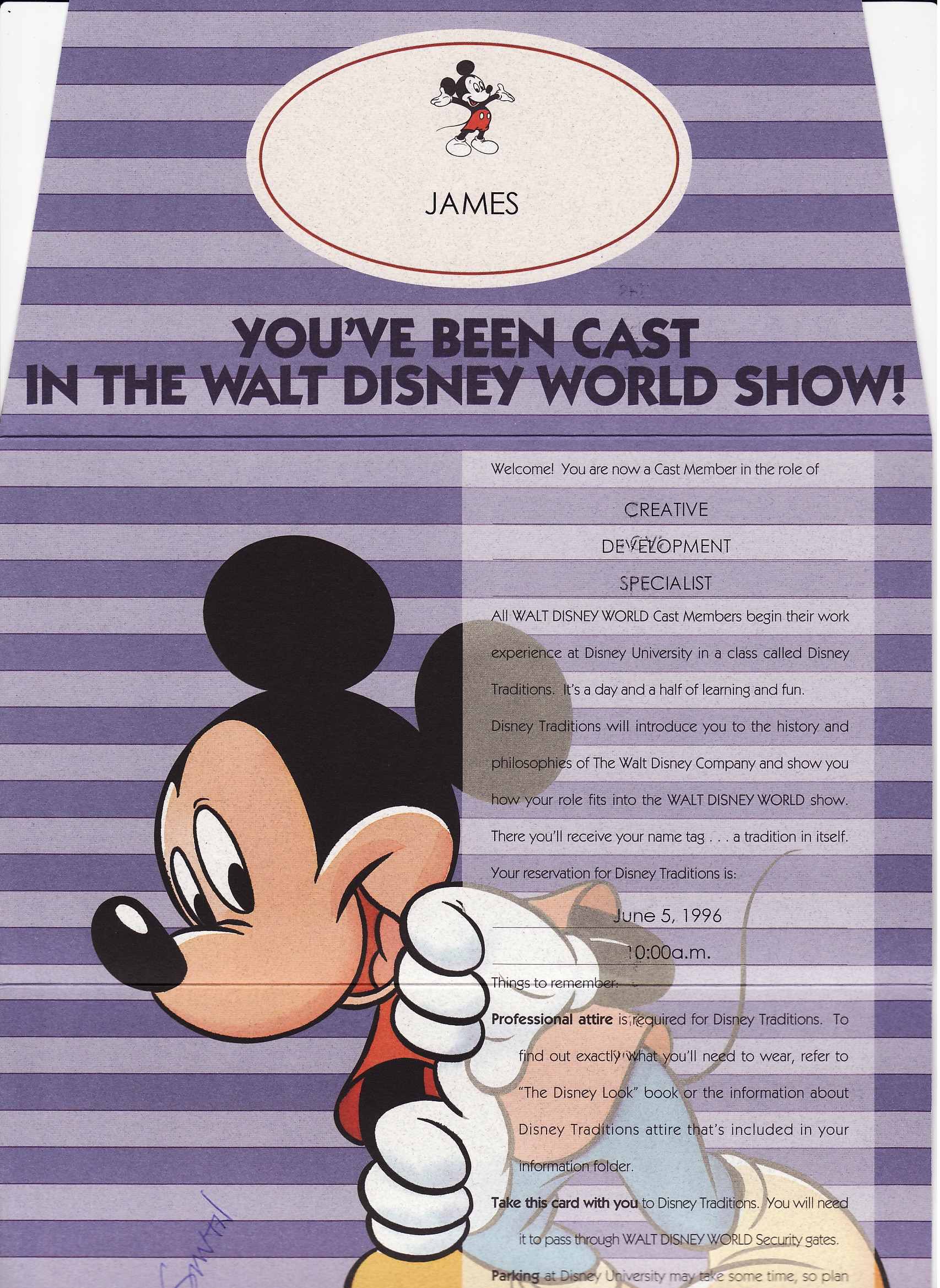 Walt Disney World’s Hiring Packet is energetic and creates anticipation.